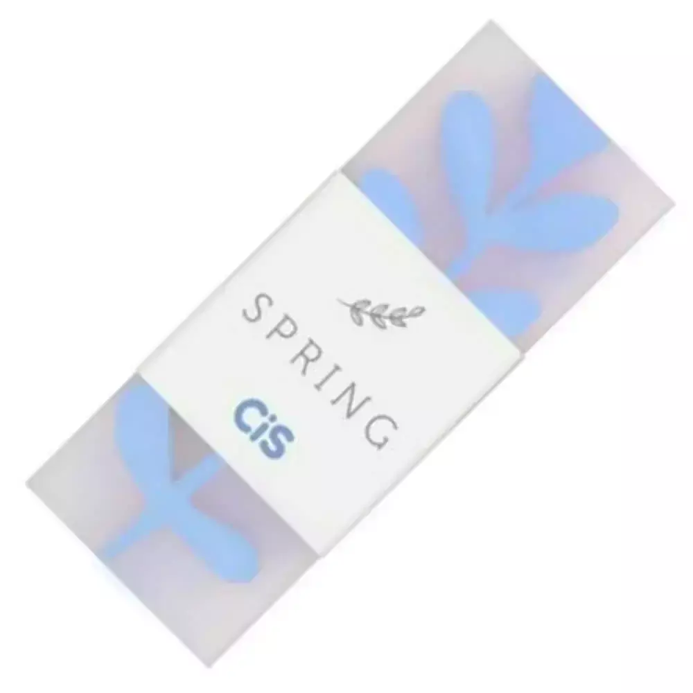 A Borracha CIS Spring traz um design minimalista e moderno com capa translúcida decorada com folha estilizada em tons pastel, inspirada na leveza da primavera.